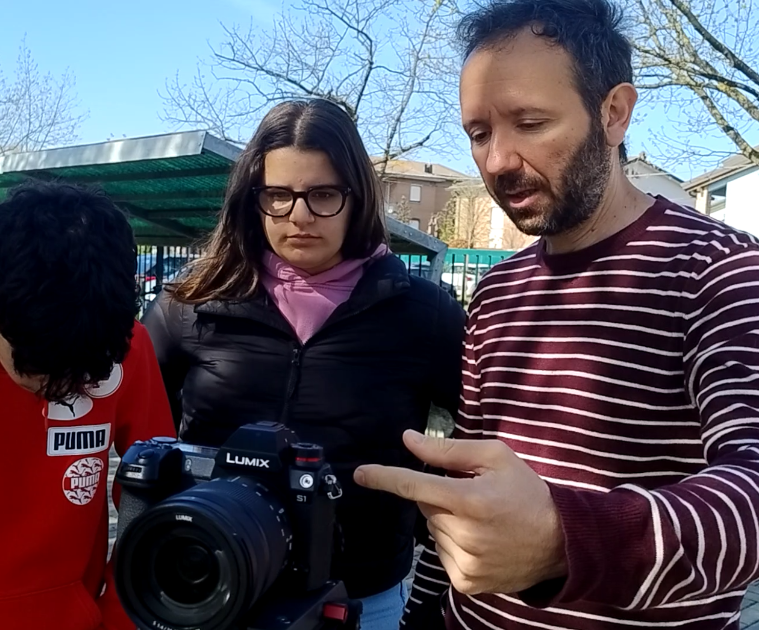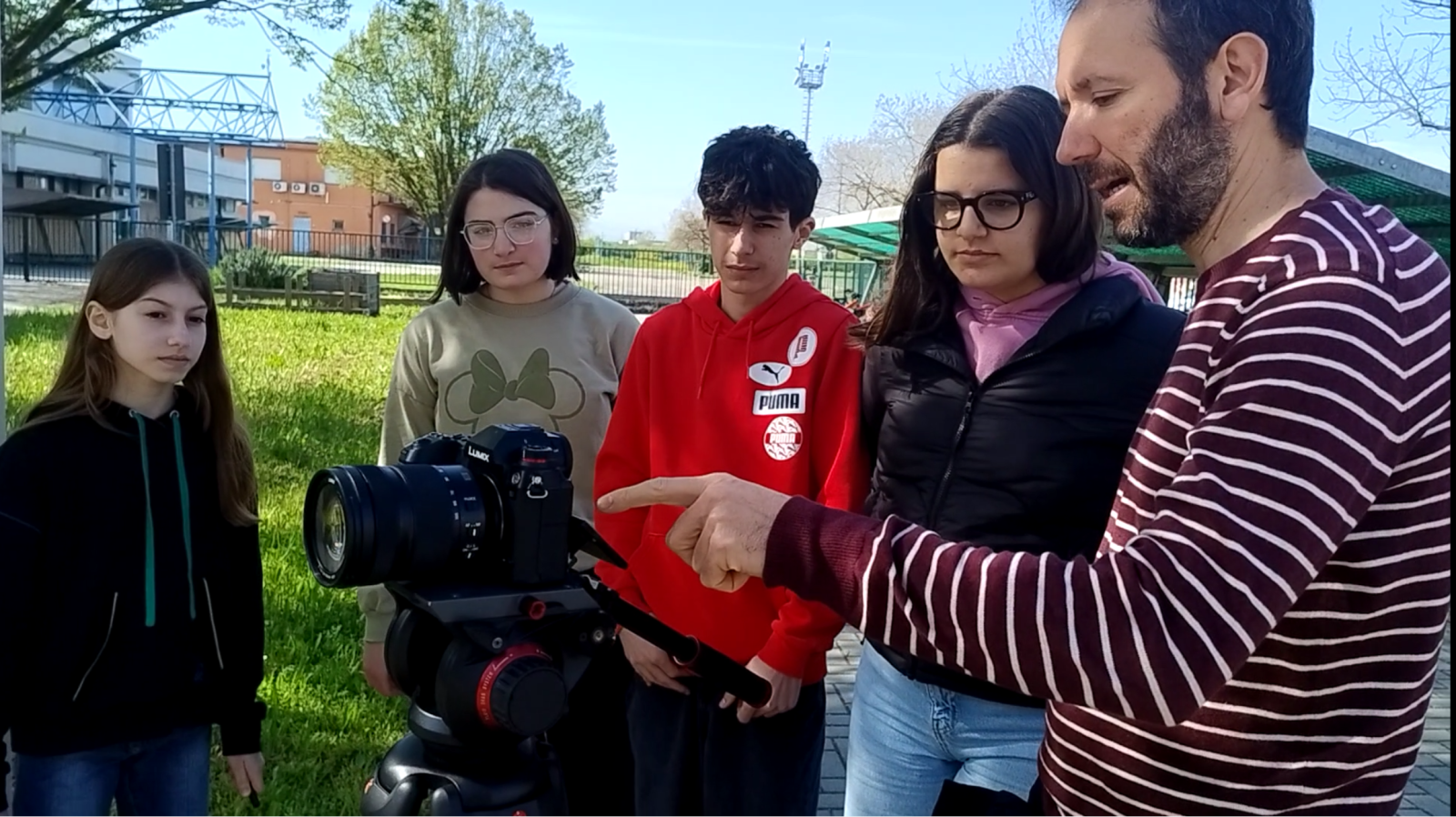regista Matteo Parisini, il cineoperatore Leonardo Jones coordinatore del progetto di istituto prof. Picardi Massimo coordinatrici di classe per la 2A prof.ssa Spaggiari Silvia, per la 2C prof.ssa